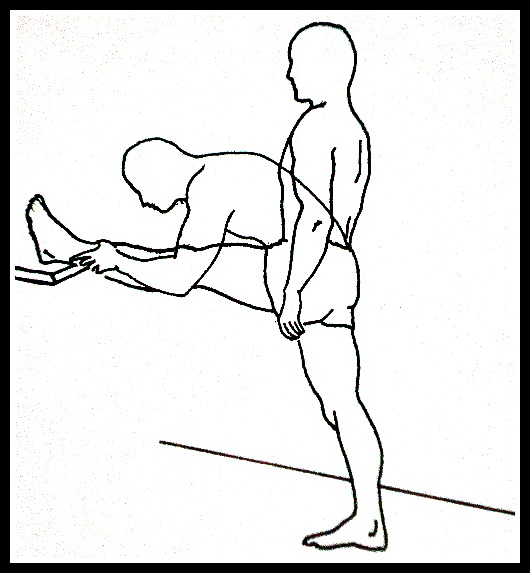 * Bend over and place your hands on the floor for support while raising one leg up and against the wall.